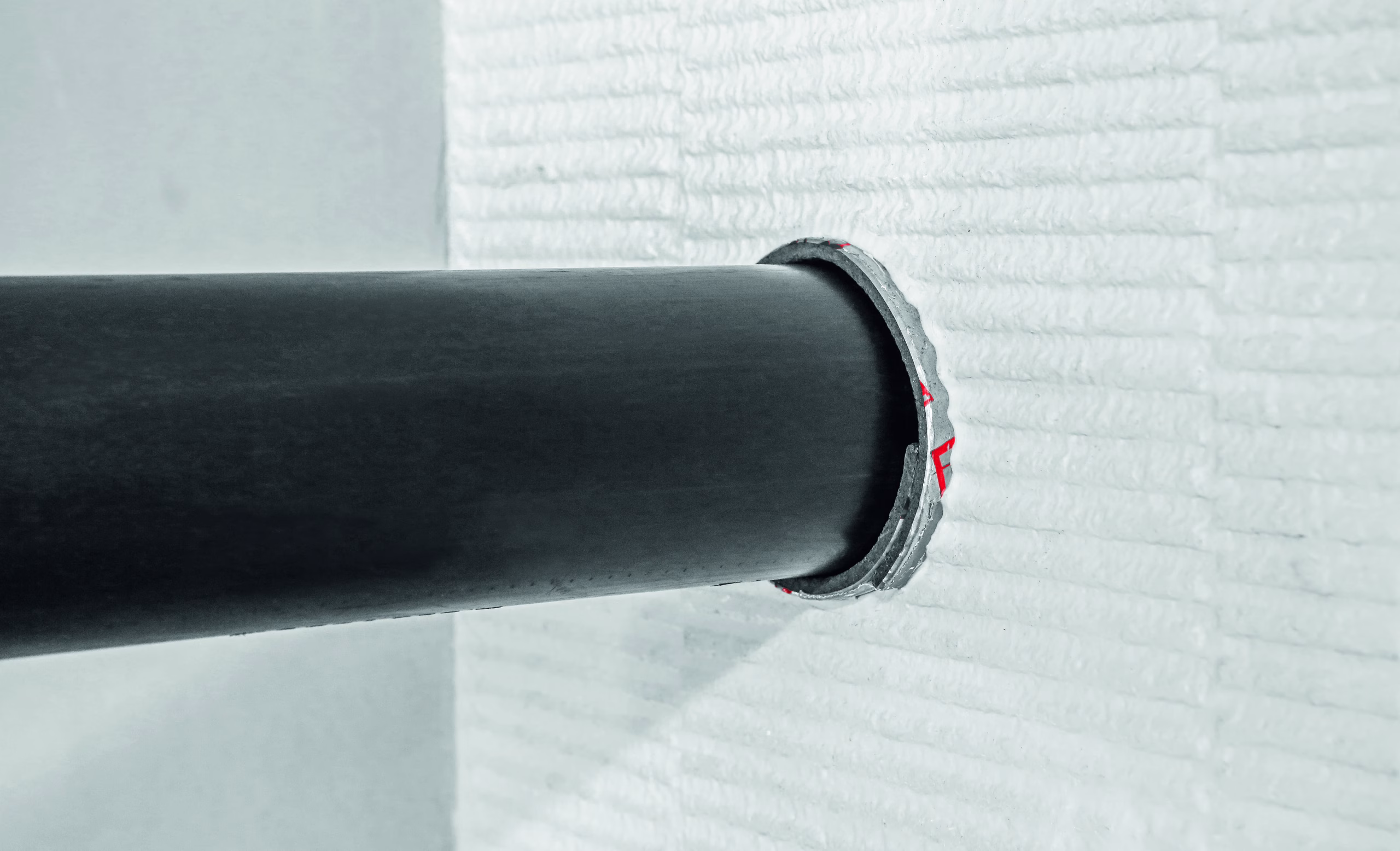 Listón para banda intumescente flexible que ayuda a crear una barrera contra el fuego y el humo en atravesamientos de tuberías combustibles